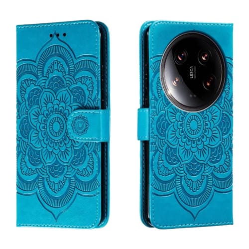 Para Xiaomi 14 Ultra Sun Mandala Funda De Cuero Para Teléfono Con Patrón En Relieve (Azul)