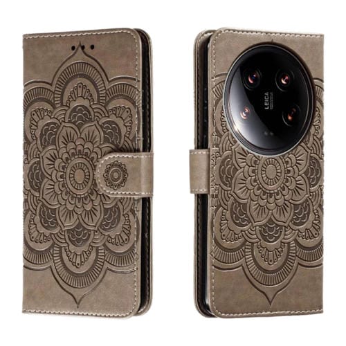 Para Xiaomi 14 Ultra Sun Mandala Funda De Cuero Para Teléfono Con Patrón En Relieve (Gris)