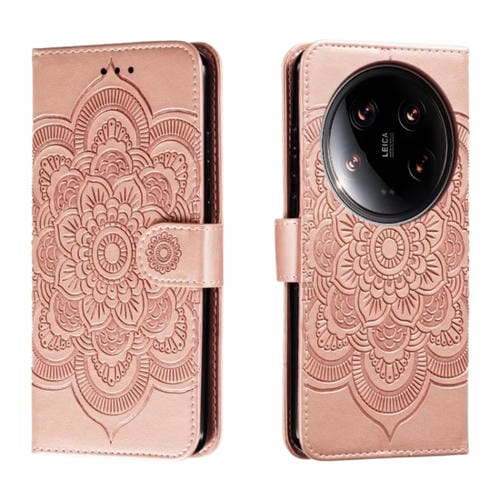 Para Xiaomi 14 Ultra Sun Mandala Funda De Cuero Para Teléfono Con Patrón En Relieve (Oro Rosa)
