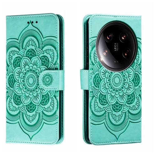 Para Xiaomi 14 Ultra Sun Mandala Funda De Cuero Para Teléfono Con Patrón En Relieve (Verde)