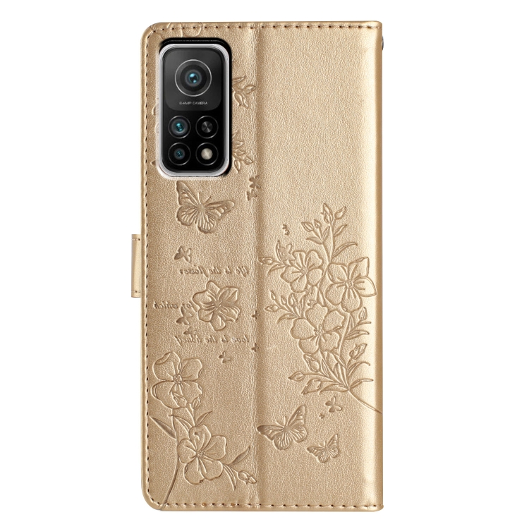 Para Xiaomi Mi 10T Pro 5G Funda de Cuero para Teléfono con Mariposas y Flores (Dorado)