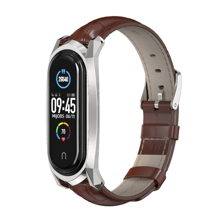 Para Xiaomi Mi Band 6/5/4/3 Mijobs GT First Capeta Cow Watch Band (Coffee de bambú de café+plata)
