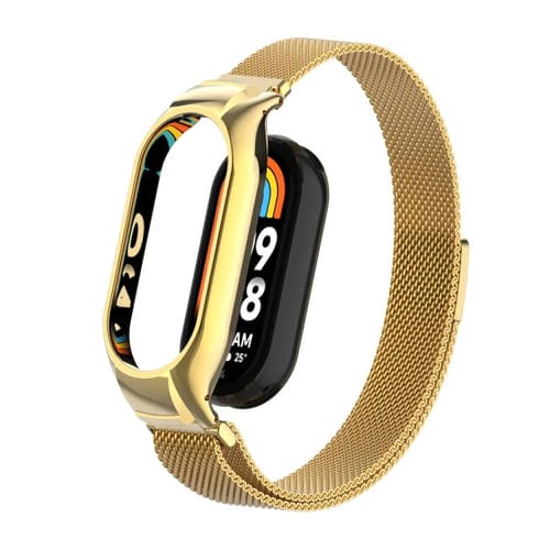 Caja de Metal integrada + Banda Magnética Milanesa para Xiaomi Mi Band 8 (Oro)