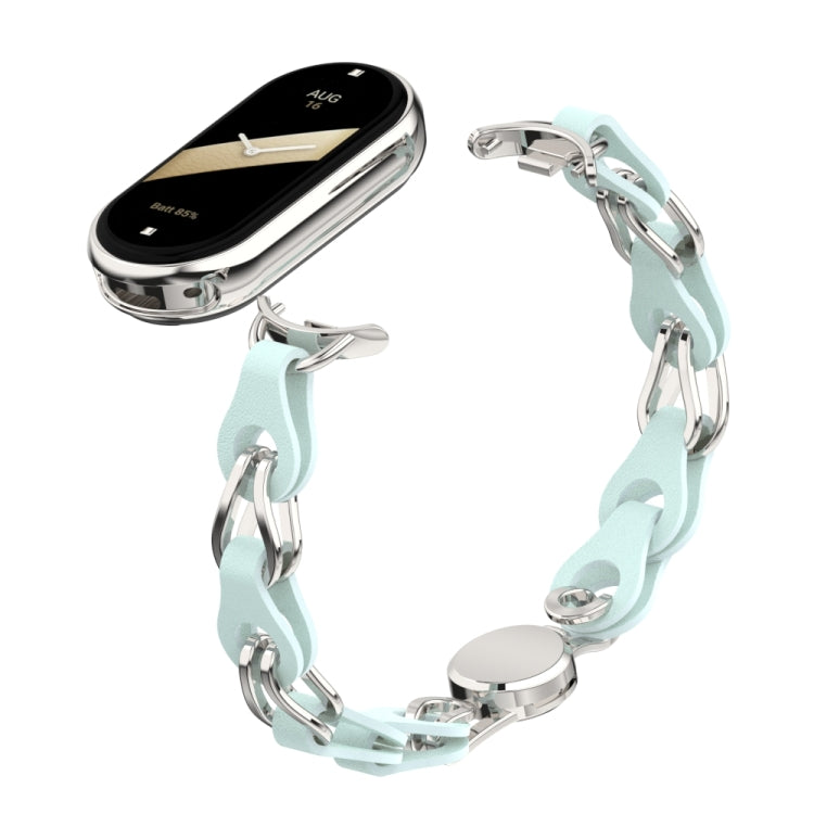 Para Xiaomi Mi Band 8 Correa de reloj con hebilla magnética de cadena de cuero hueca (Azul)
