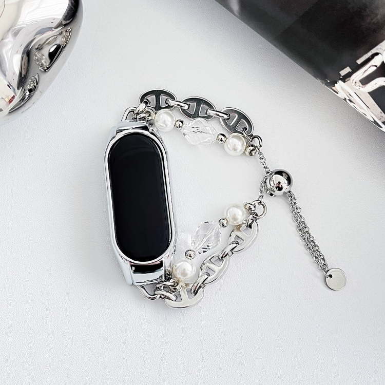 Correa de Reloj para Xiaomi Mi Band 8 Ónix con Cuentas de Cristal (Plata)