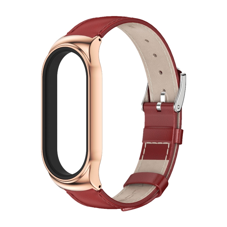 Estuche Cuero Genuino Mijobs para Xiaomi Mi Band 8 Correa de Piel de Vaca (Rojo Rosa Dorado)