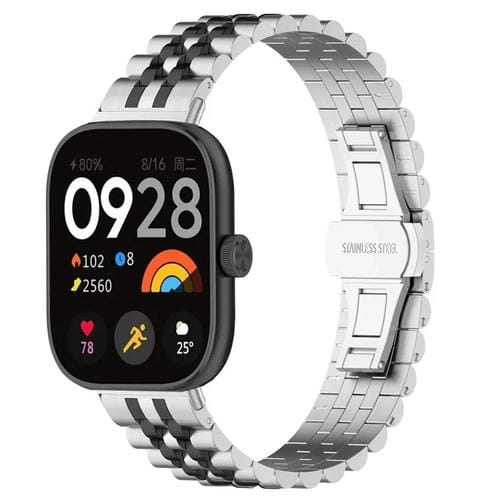 Correa de Reloj Metal para Xiaomi Mi Band 8 Pro con Hebilla Mariposa de Cinco Cuentas (Negro Plateado)