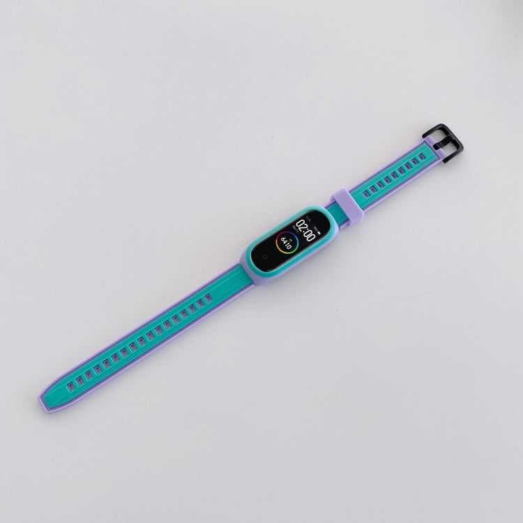 Para Xiaomi MI Banda 4/3 Muñequera de reemplazo de silicona de dos colores universal (azul + púrpura)