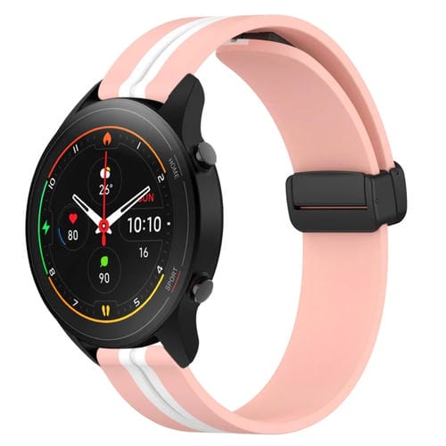 Correa de Silicona para Xiaomi Mi Watch S1 Pro 22mm con Cierre Magnético Plegable (Rosa + Blanco)