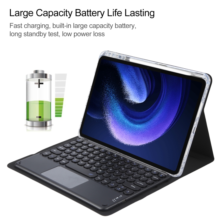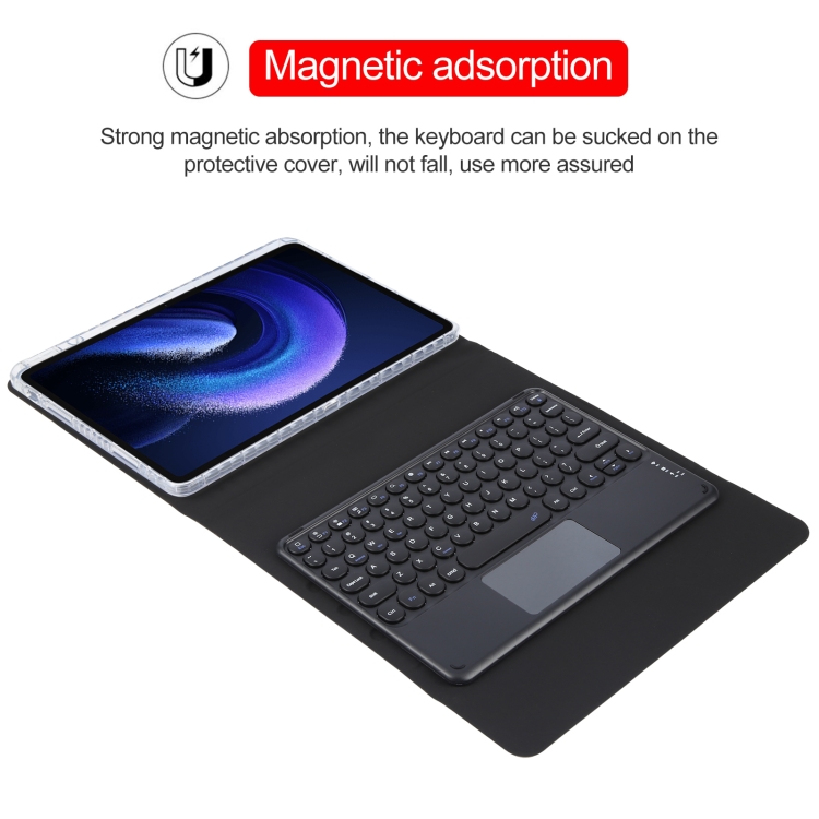 - 1x Funda de Cuero con Teclado Bluetooth y Soporte Giratorio para Xiaomi Pad 6 con Panel Táctil (Negro)