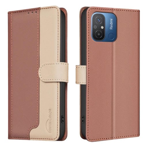 Para Xiaomi Poco C55 / Redmi 12C Funda de Teléfono de Cuero Antirrobo Rfid a Juego de Colores (Marrón)