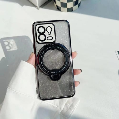 Para Xiaomi Poco F5 Pro 5G Rotación Magsafe Holder Gradient Glitter TPU Funda para Teléfono (Negro)