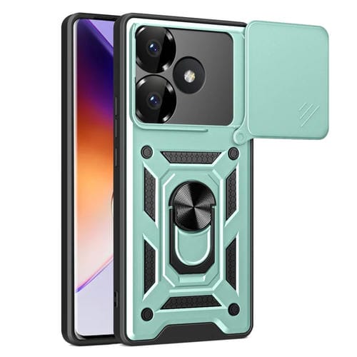 Para Xiaomi Poco F6 Diseño de Cubierta de Cámara Deslizante Estuche para Teléfono PC Híbrido de TPU (Verde Menta)