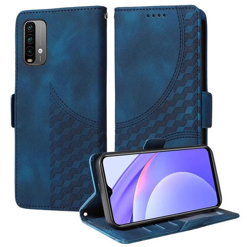 Para Xiaomi Poco M3 Funda para Teléfono de Cuero Estrellado con Rombos En Relieve (Azul)