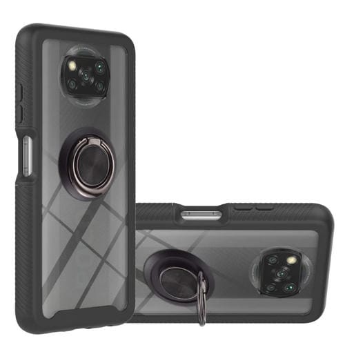 Para Xiaomi Poco X3 Nfc Starry Sky Solid Color Serie PC a Prueba de Golpes PC + Funda Protectora TPU con Soporte de Anillo y Función Magnética (Negro)