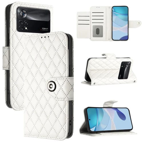 Para Xiaomi Poco X4 Pro 5G Funda de Cuero con Tapa con Textura Romboidal y Cordón (Blanco)