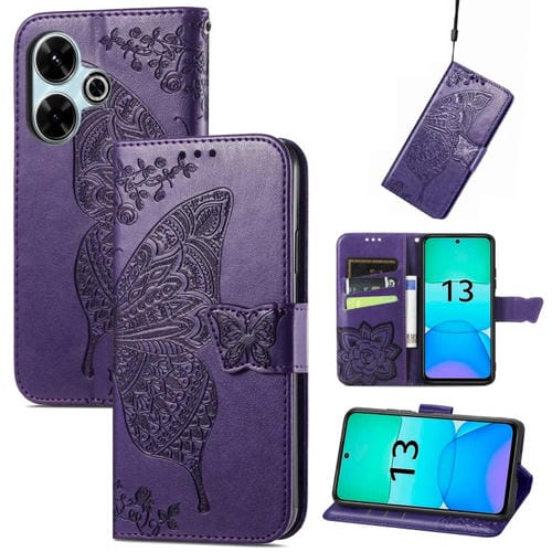 Para Xiaomi Redmi 13 4G Butterfly Love Flower Funda de Cuero para Teléfono En Relieve (Púrpura)