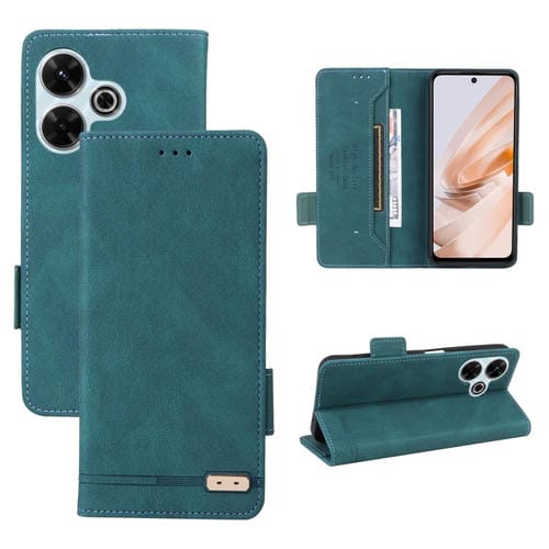 Para Xiaomi Redmi 13 4G Funda de Cuero para Teléfono con Cierre Magnético Global (Verde)