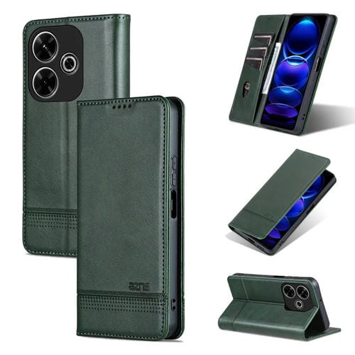 Para Xiaomi Redmi 13 4G Global Azns Funda para Teléfono con Tapa de Cuero con Textura de Pantorrilla Magnética (Verde Oscuro)
