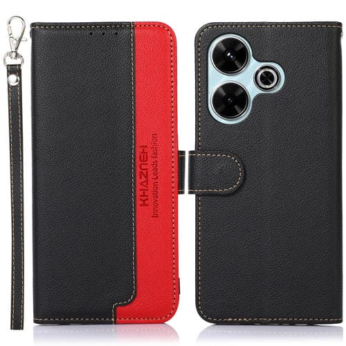 Para Xiaomi Redmi 13 4G Khazneh Litchi Texture Funda para Teléfono Rfid de Cuero (Negro)