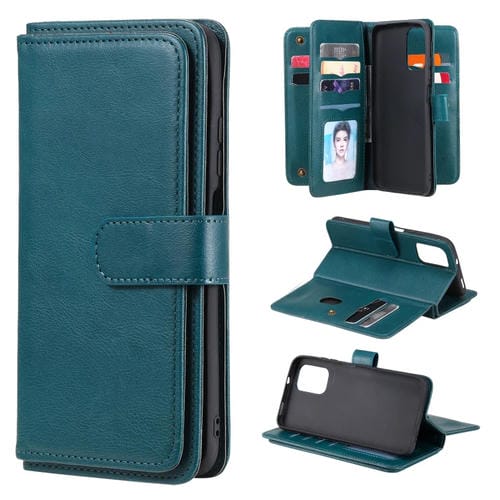 Para Xiaomi Redmi Note 10 4G Multifuncional Magnético Hebilla de Cobre Horizontal Flip Funda de Cuero de Color Sólido con 10 Ranuras para Tarjetas y Billetera y Soporte y Marco de Fotos (Verde Oscuro)