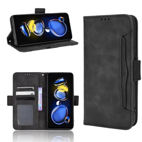 Para Xiaomi Redmi Note 11T Pro 5G Skin Feel Becerro Textura Ranuras para tarjetas Funda de cuero para teléfono (Negro)