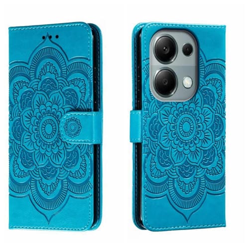Para Xiaomi Redmi Note 13 Pro 4G Sun Mandala Funda de Cuero para Teléfono con Patrón En Relieve (Azul)