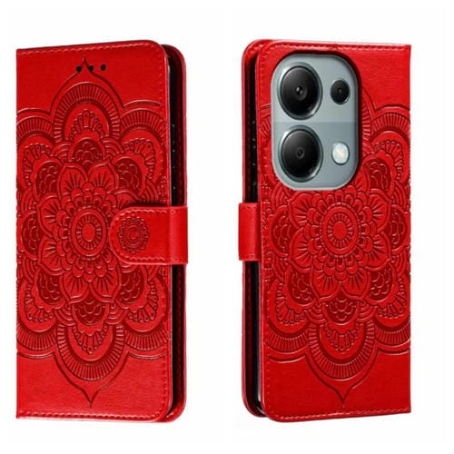 Para Xiaomi Redmi Note 13 Pro 4G Sun Mandala Funda de Cuero para Teléfono con Patrón En Relieve (Rojo)