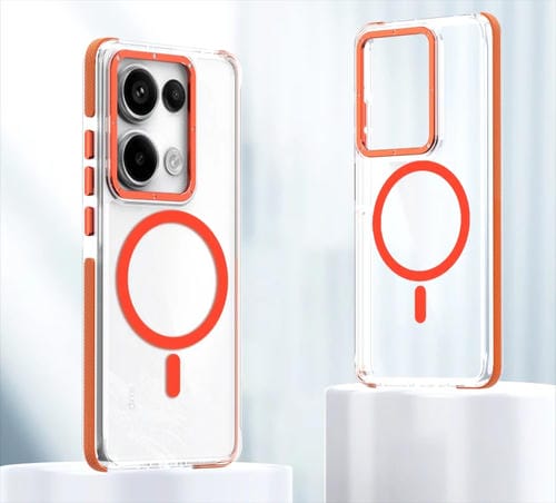 Para Xiaomi Redmi Note 13 Pro 5G Estuche para Teléfono Magsafe Híbrido de Acrílico Transparente de Doble Color (Naranja)