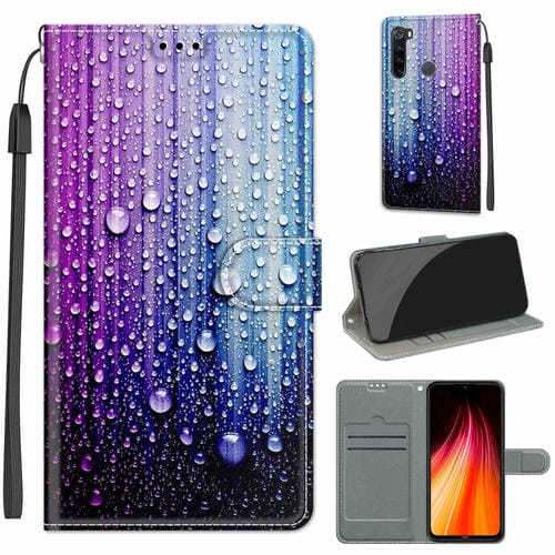 Para Xiaomi Redmi Note 8 Dibujo de Color Voltaje Cierre Magnético Cierre de Cuero Horizontal Flip Pu Funda con Soporte y Ranuras de Tarjetas (C05 Gotas de Agua Azul Púrpura)
