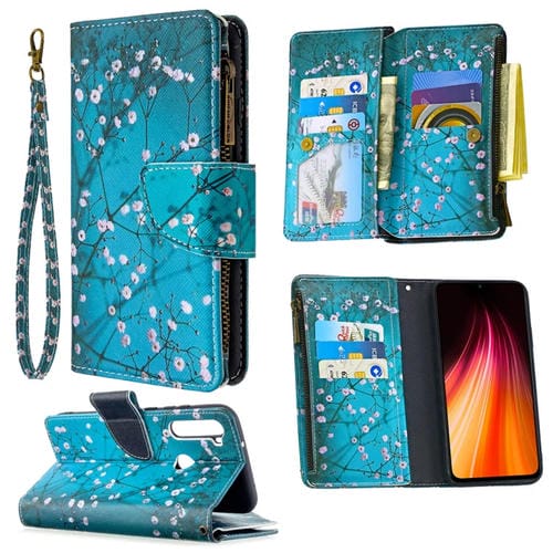 Para Xiaomi Redmi Note 8T Patrón de Dibujo de Colores Cremallera Funda de Cuero con Tapa Horizontal con Soporte y Ranuras para Tarjetas y Billetera (Plum Blossom)