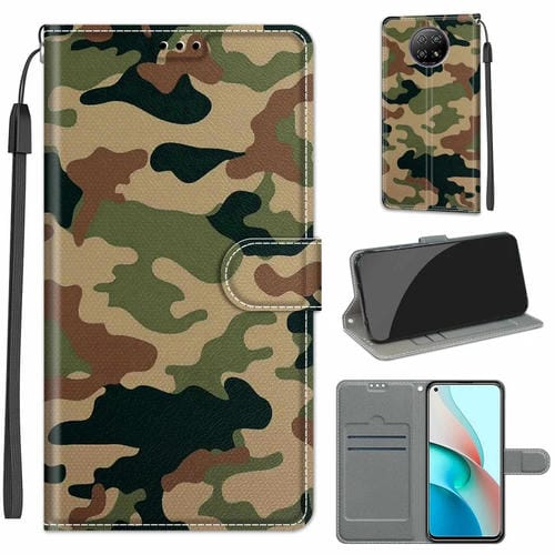 Para Xiaomi Redmi Note 9 5G / 9T Dibujo de Color de Voltaje Cierre Magnético Horizontal Flip Pu Funda de Cuero con Soporte y Ranuras para Tarjetas (C15 Camuflaje Amarillo Verde)