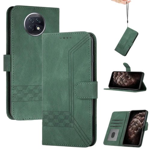 Para Xiaomi Redmi Note 9T Cubic Skin Siente Funda de Teléfono de Cuero con Flip (Verde Oscuro)