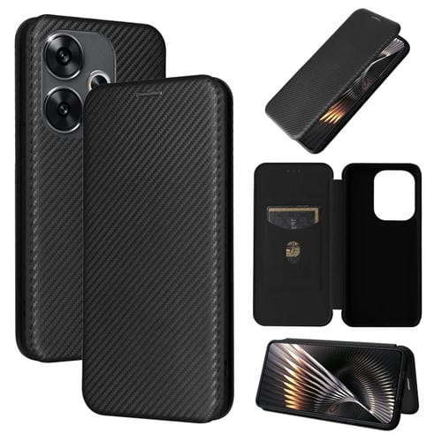 Para Xiaomi Redmi Turbo 3 / Poco F6 Funda de Cuero con Tapa con Textura de Fibra de Carbono (Negro)