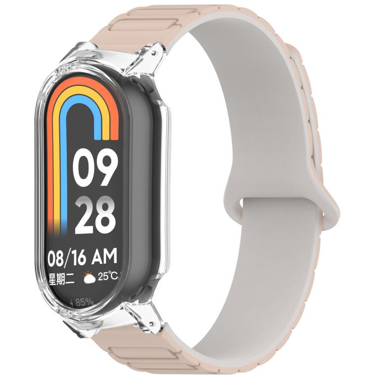 Para Xiaomi Smart Band 9/9 NFC Watch Case Correa de reloj de silicona magnética en forma de I integrada (té con leche blanco + transparente)
