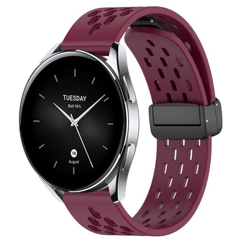 Correa de Silicona para Xiaomi Watch S2 42mm 22mm con Cierre Magnético Plegable (Rojo Vino)