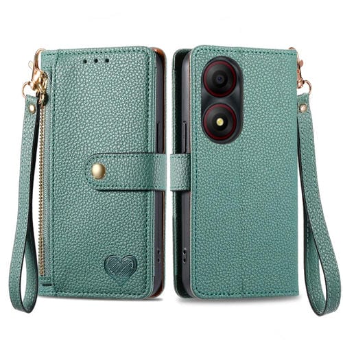 Funda de Cuero para ZTE Blade A34 Love Zipper Lanyard (Verde)