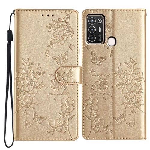 Funda para ZTE Blade A52 de Cuero con Relieve Flor de Amor y Mariposa (Dorado)