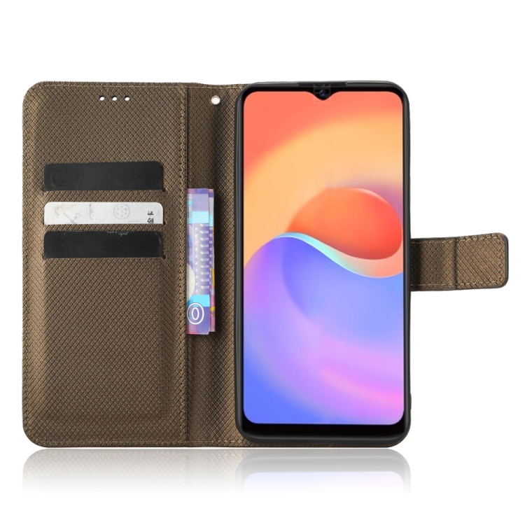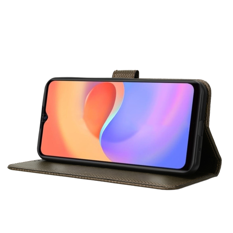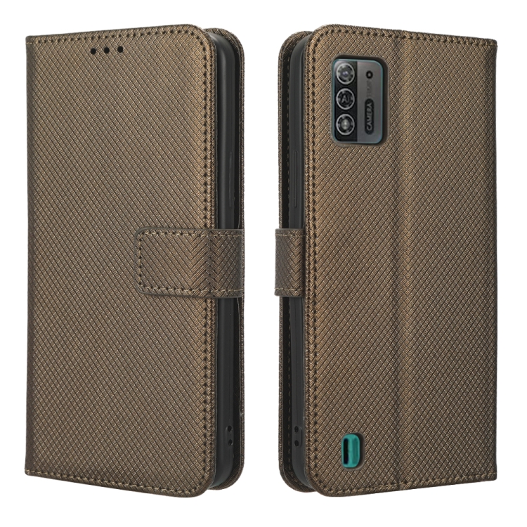 Funda de Cuero para ZTE Blade A52 Lite con Textura de Diamante (Marrón)