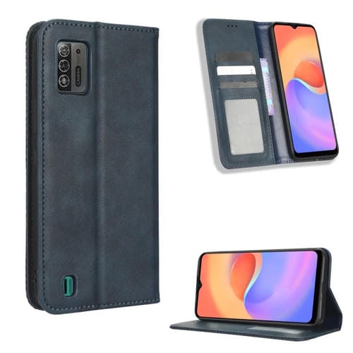 Funda de Cuero con Hebilla Magnética para ZTE Blade A52 Lite Textura Retro (Azul)