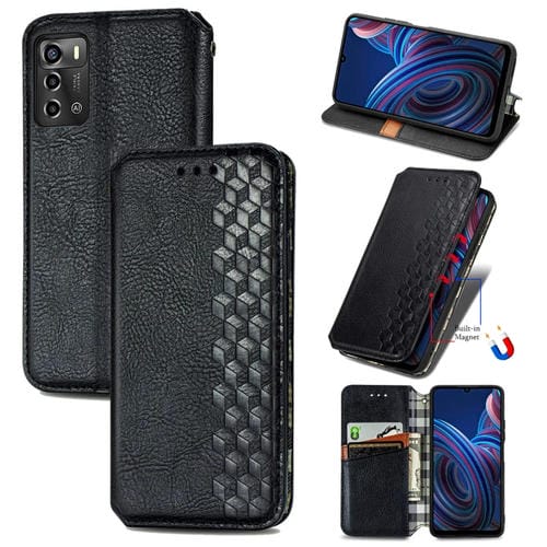 Funda para ZTE Blade A72 4G de Cuero Magnético Prensado con Rejilla Cúbica (Negro)
