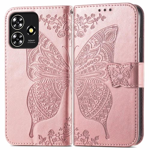 Funda para ZTE Blade A73 4G de Cuero con Relieve de Flor y Mariposa (Oro Rosa)