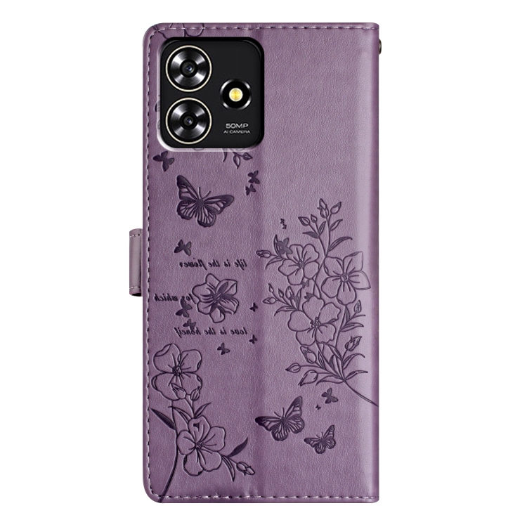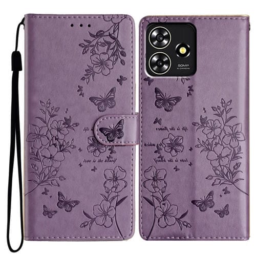 Funda para ZTE Blade A73 4G de Cuero con Relieve Flor y Mariposa (Púrpura)