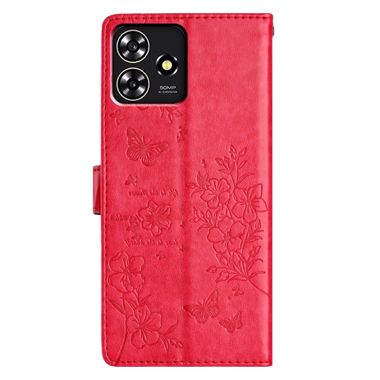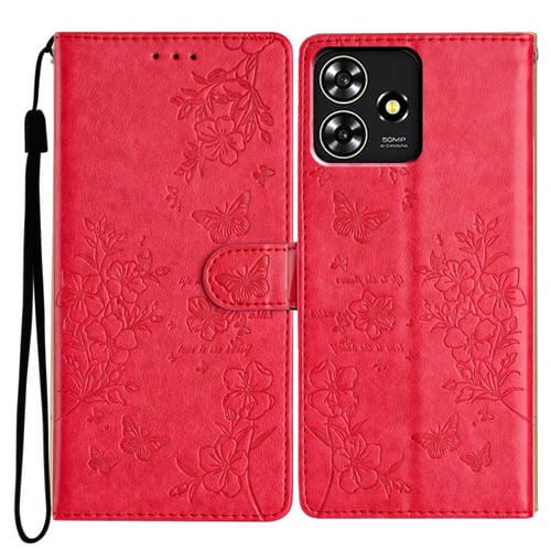 Funda para ZTE Blade A73 4G Cuero con Relieve Flor de Amor y Mariposa (Rojo)
