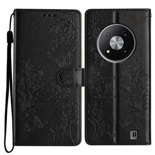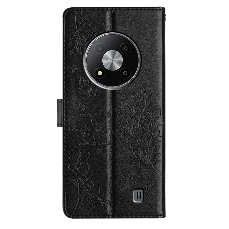 Funda para ZTE Blade A73 5G de Cuero con Relieve de Flor y Mariposa (Negro)