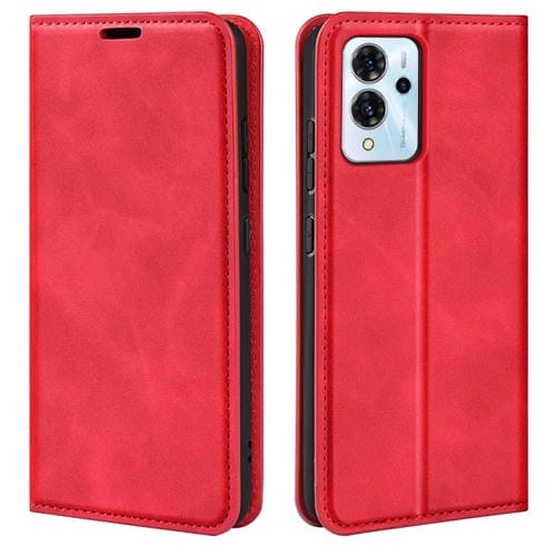 Estuche para ZTE Blade V40 Pro de Cuero con Succión Magnética Piel Retro (Rojo)
