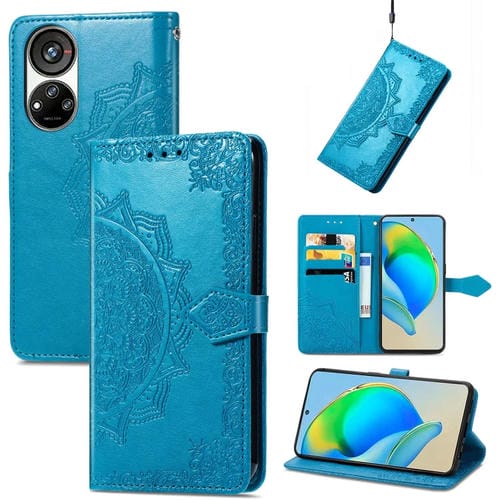 Funda para ZTE Blade V40S Mandala Flower Cuero en Relieve (Azul)