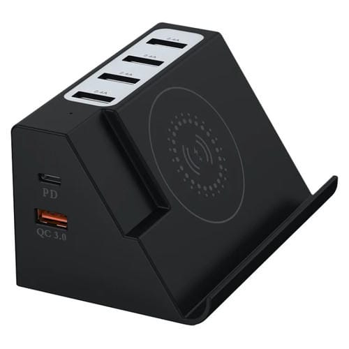 Cargador Multifunción 6 Puertos Pd 20W Qc 3.0 Carga Inalámbrica (Enchufe de la UE)