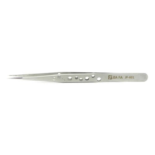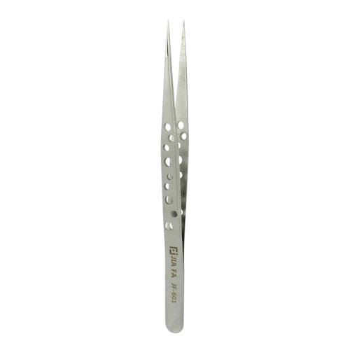 Las Pinzas de Punta Recta Jiafa JF-601 son una Herramienta de alta resistencia diseñada para facilitar la manipulación precisa de Componentes pequeños en procesos de Reparación y ensamblaje de Productos Digitales. Su diseño recto y punta fina permite un agarre seguro y controlado, ideal para Técnicos y usuarios que reparan por cuenta propia dispositivos electrónicos. Este modelo es compatible de forma genérica con múltiples aplicaciones en electrónica, ofreciendo durabilidad y precisión en tareas delicadas.
