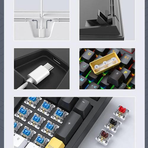 2. Diseño de cable tipo C almacenable, con separación entre teclas y cable, fácil de transportar
